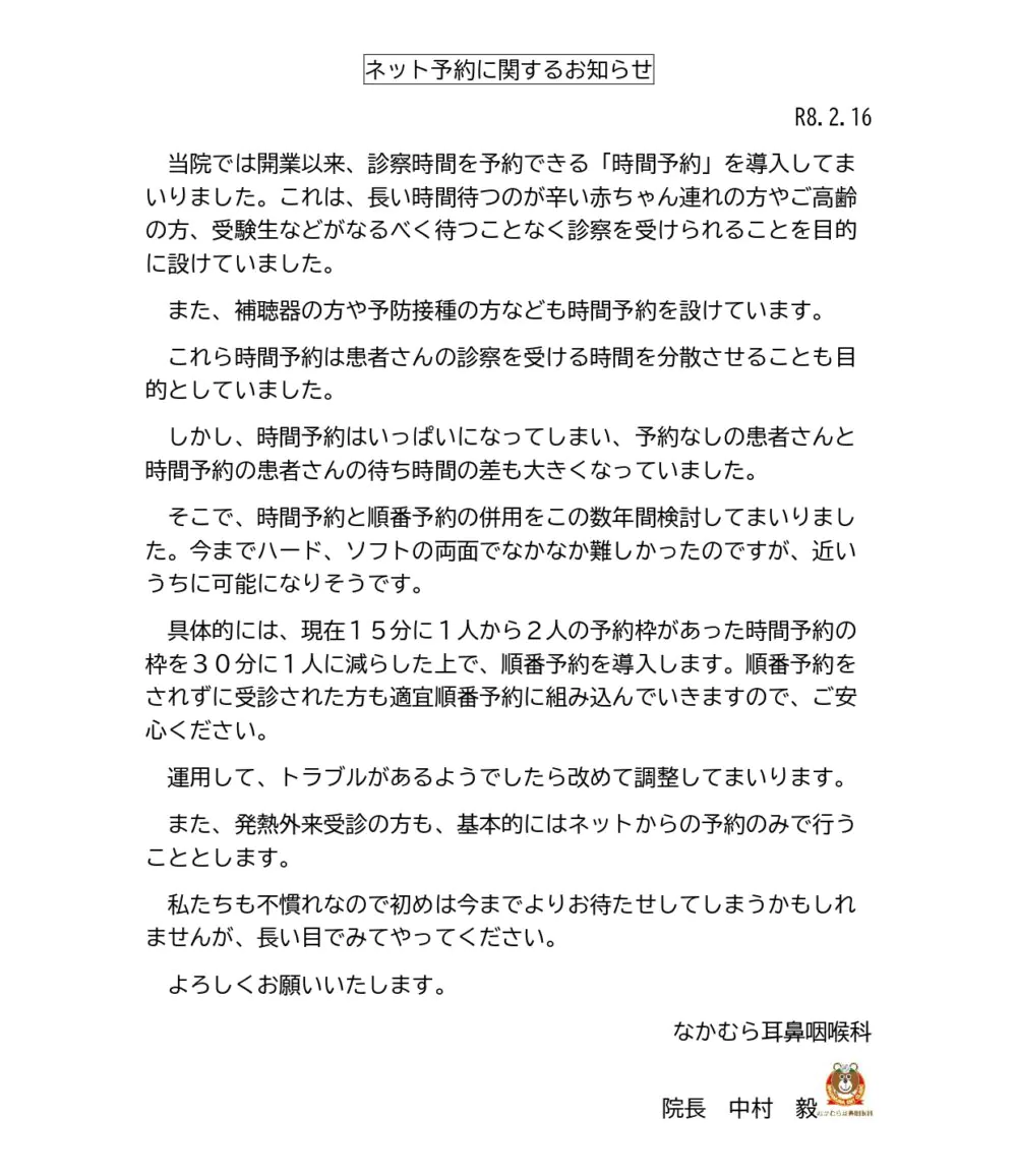 今後も、なかむら耳鼻咽喉科の情報を発信してまいります。